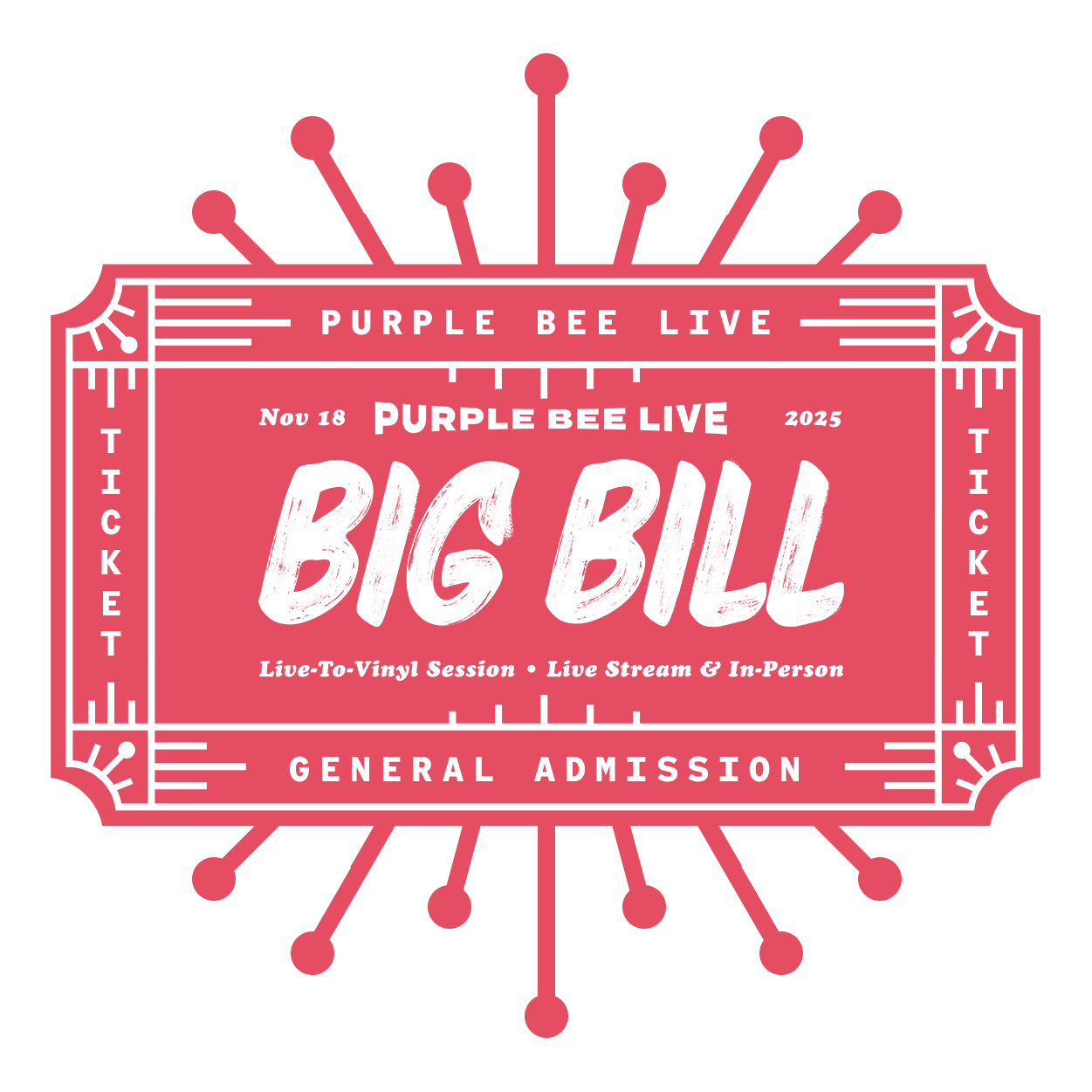 Tuesday, November 18th, 2025 @ 7:30PM ct: Purple Bee Presents Big Bill • Live-to-Vinyl Session • Purple Bee Live 135. Join us in-studio for an unparalleled live experience.
