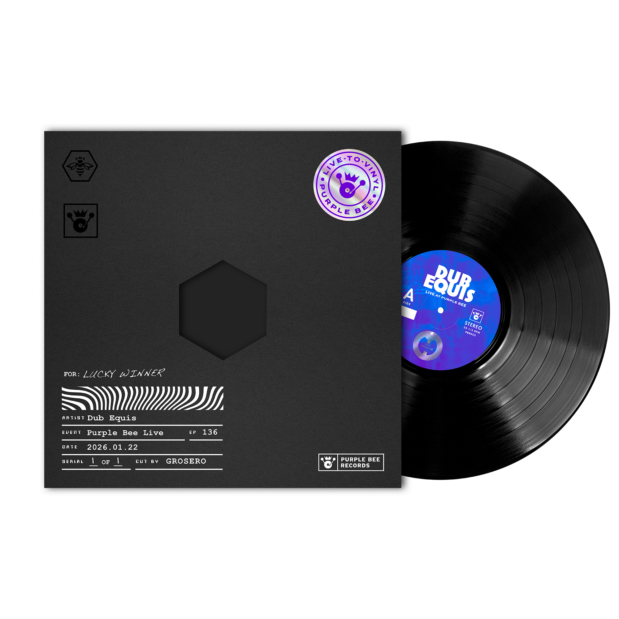 Purple Bee Presents Dub Equis • Live-to-Vinyl Session • Purple Bee Live. The limited-edition live-to-vinyl LP captures the raw energy and unique sound of the band, cut in real-time as they perform. Be a part of this sonic time capsule – pre-order your copy now. Hurry! Pre-sales end when the show wraps.