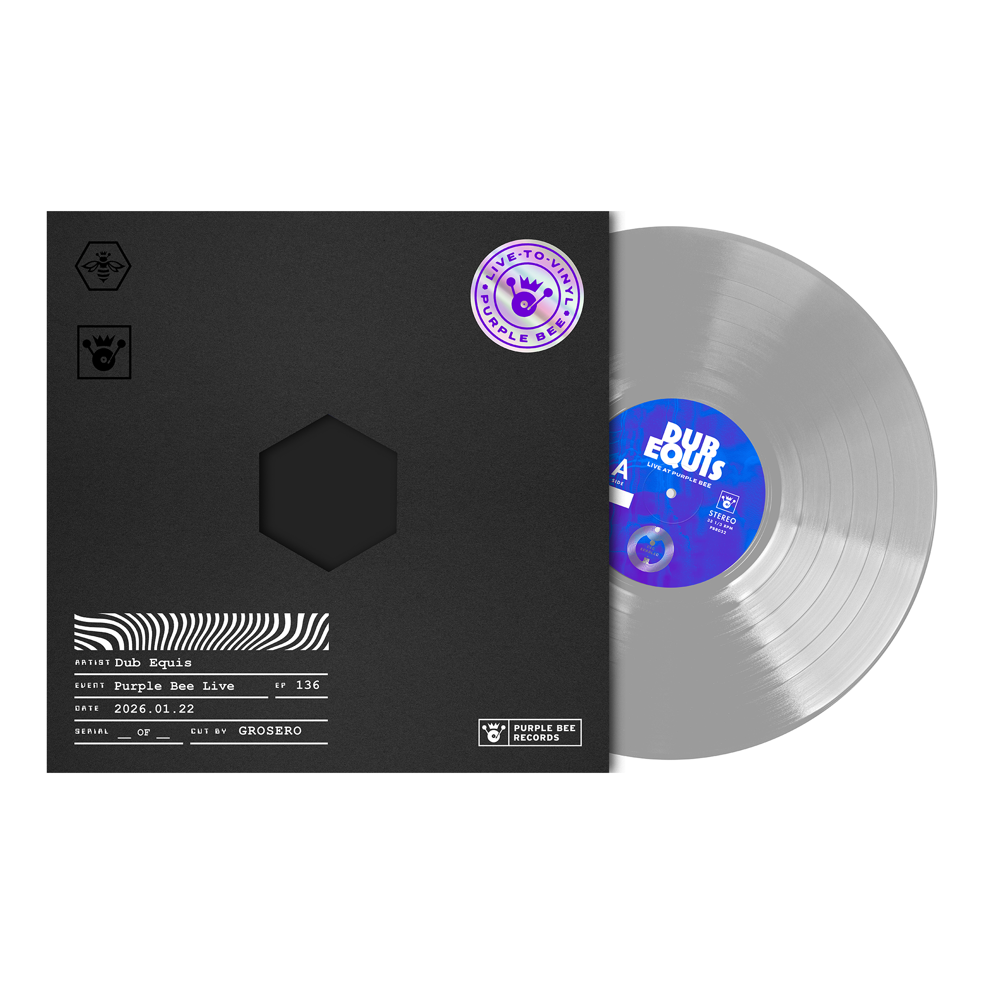 Thursday January 22nd, 2026 @ 7:30PM ct: Purple Bee Presents Dub Equis • Live-to-Vinyl Session • Purple Bee Live. The limited-edition live-to-vinyl LP captures the raw energy and unique sound of the band, cut in real-time as they perform. Be a part of this sonic time capsule – pre-order your copy now. Hurry! Pre-sales end when the show wraps.
